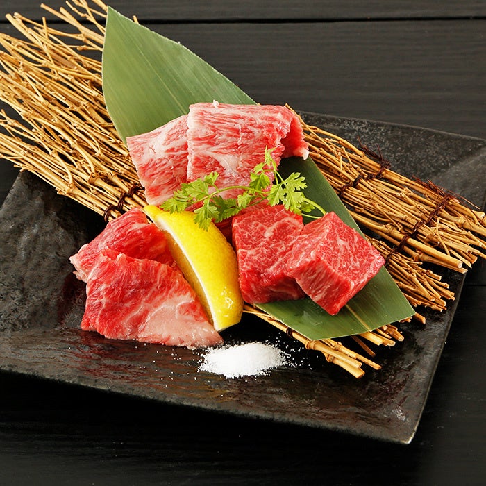 カルビ・カイノミ・中落ちを盛り合わせで提供する『和牛三点盛』は必食。