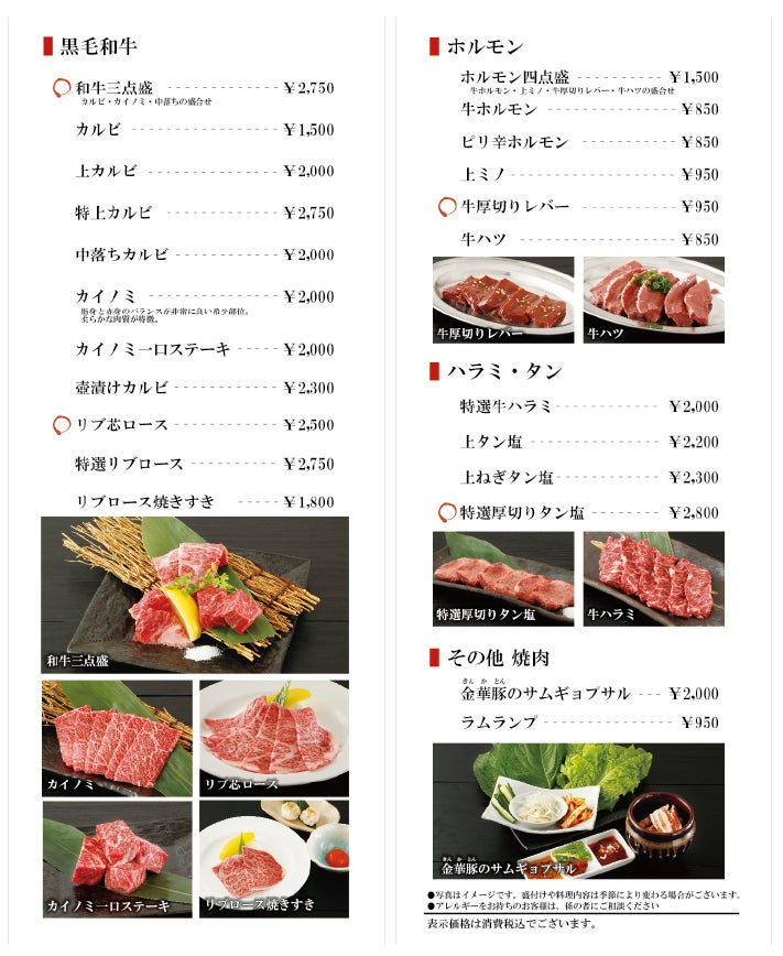 その他『壺漬けカルビ』や『リブロース焼きすき』などのメニューを多数ご用意しております。