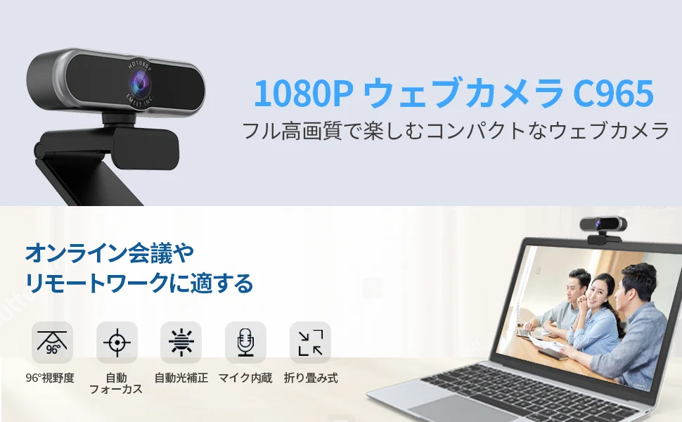 固定フォーカスレンズを搭載しており、ブレ等を解消してストレスのない映像記録が可能。70度の視野度により幅広い範囲をカバーできるため、個人会議やオンライン授業にも最適です。