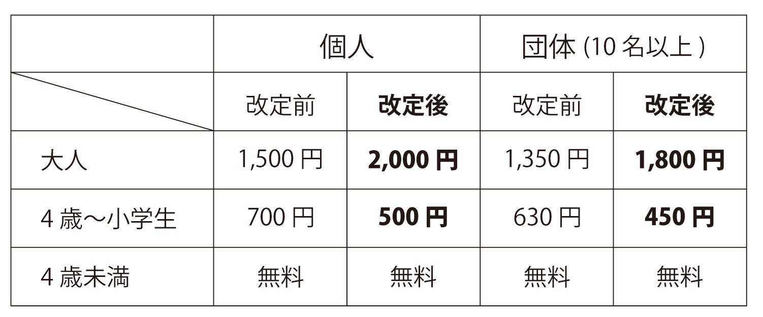 今回の料金改定で、お子さま(4歳~小学生)の入場料金は700円から500円に。
