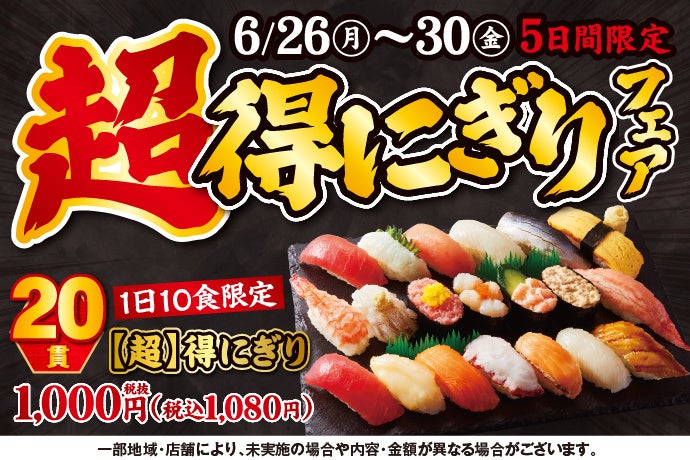 ご愛顧に感謝の気持ちを込めて!6/26(月)~平日5日間限定!『【超】得にぎりフェア』開催!
