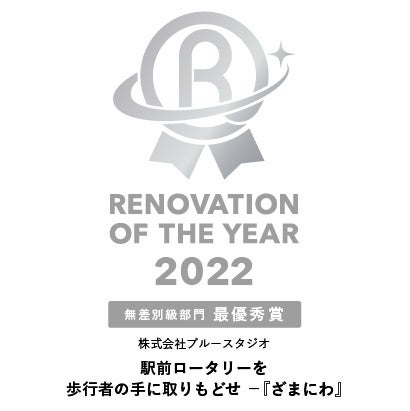 リノベーション・オブ・ザ・イヤー2015総合グランプリである 「ホシノタニ団地」。老朽化した団地と敷地を街に開き"人と人、人と街をつなぐ場として編集する "という先進的な試みが高く評価された。翌年2016年度のグッドデザイン賞において、なんと団地のリノベーションとして初の金賞を受賞している。そこから5年、「駅前ロータリーを人の手に取りもどせ」というコンセプトで座間駅東口のロータリーを、人をピックアップする機械的な場所としてではなく、“人々が集う庭”として再編集。『ざまにわ』と名付けられたその場所は、また人々と街のつながりを生み出す場所として生まれ変わった。ホシノタニ団地から続くその後の物語であり、「街の編集は続いていく」というさらなる期待をみせてくれる流石のリノベーション事例である。