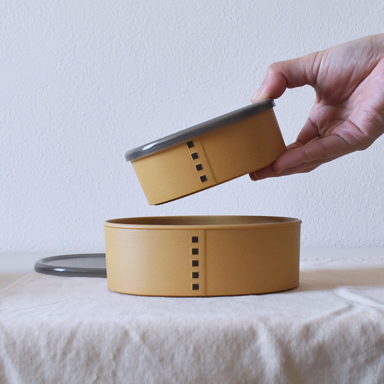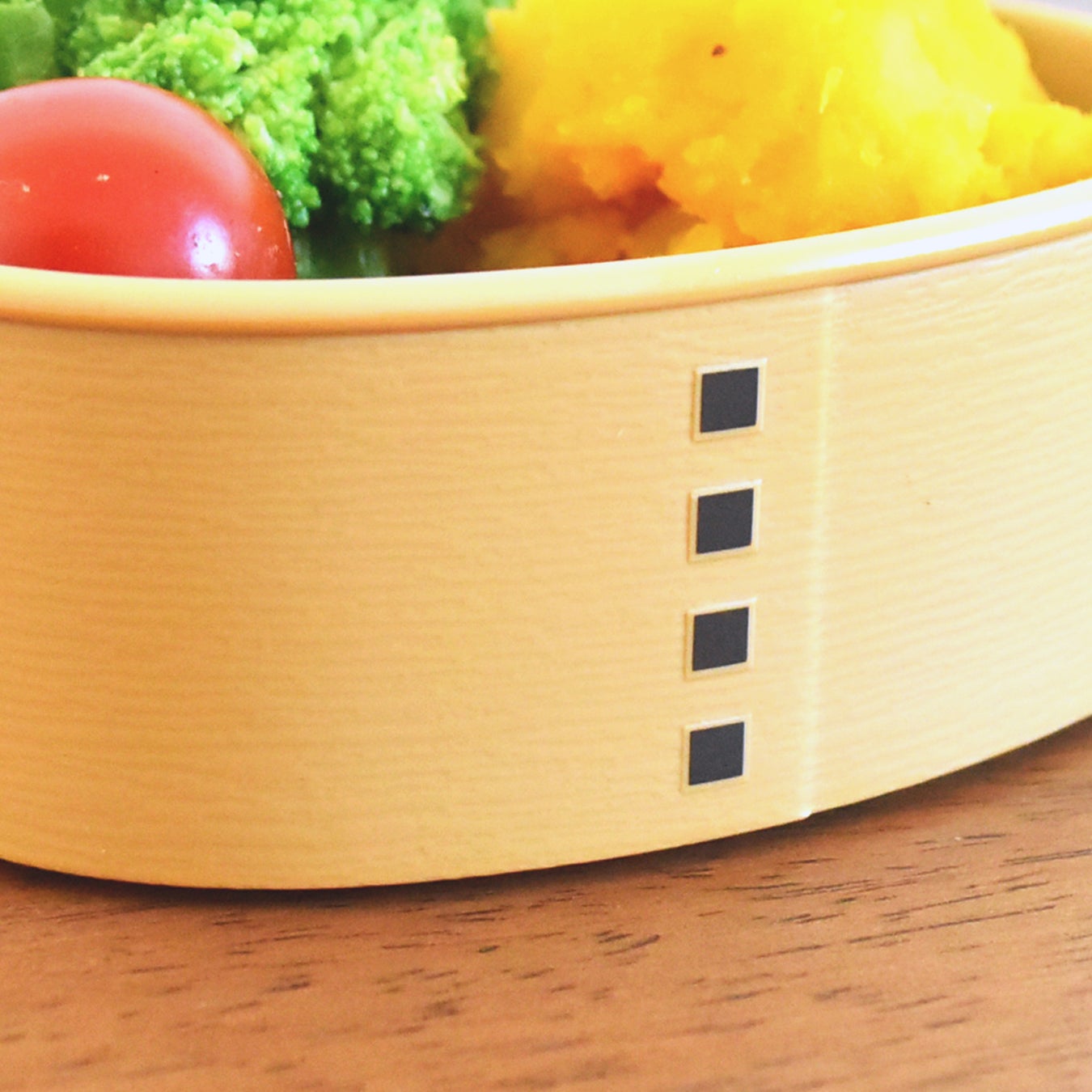 わっぱのような見た目ですが、樹脂製のフードコンテナ。