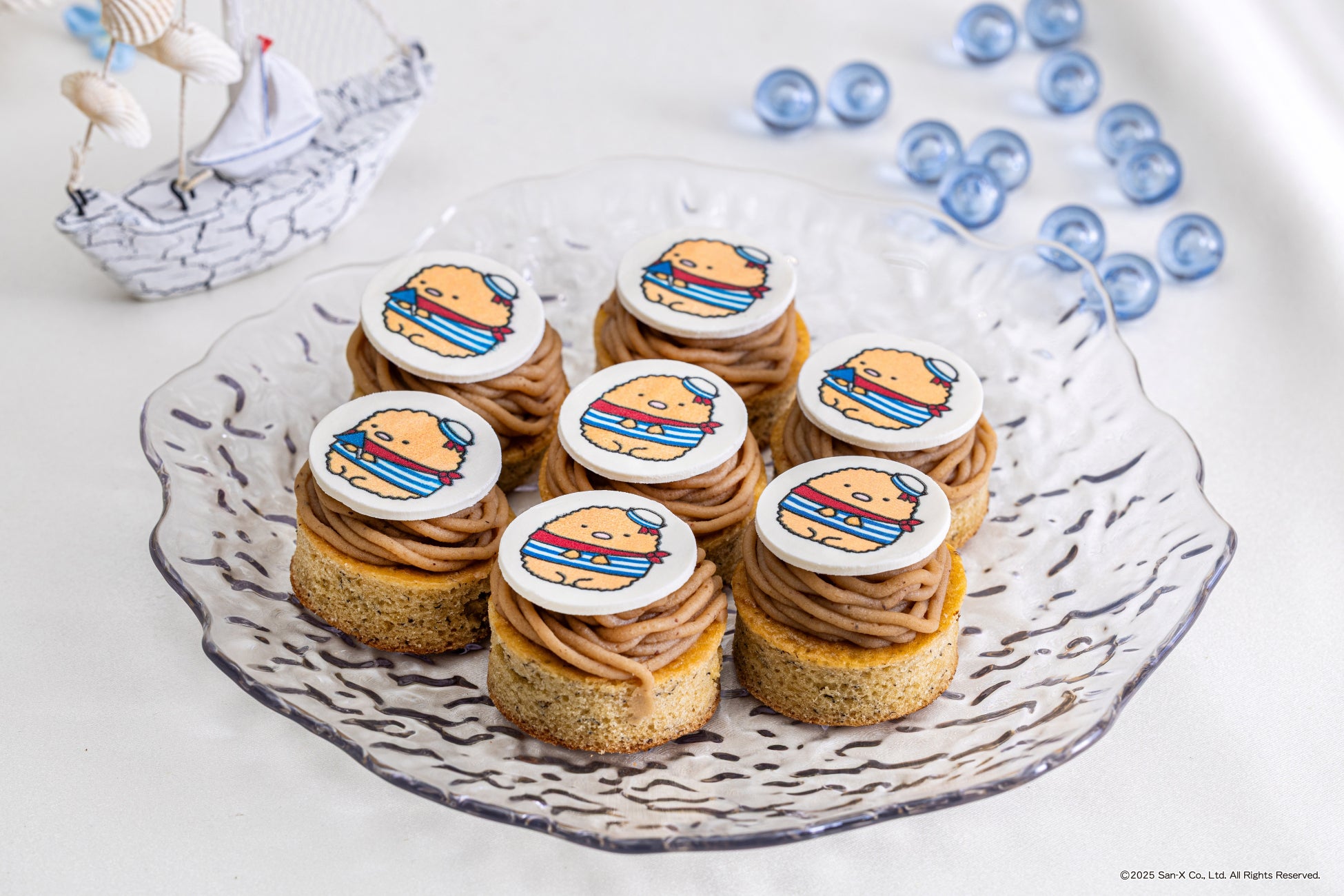 九州で初開催となるすみっコぐらしコラボレーションスイーツビュッフェ「すみっコたちのマリンパーティ」では、マリンスタイルに身を包んだすみっコたちと、すみっコぐらしの「マリンごっこ」のテーマに着想を得た約20種類のスイーツとセイボリー(軽食)をご用意致しました。マリンパーティを彩る「すみっコショートケーキ」は、ふわふわとした食感の生地に瑞々しいシャインマスカットを乗せ甘さ控えめの軽やかな生クリームを絞った素材の味を活かしたシンプルな一品です。波打ち際で遊ぶすみっコたちをイメージしたロールケーキ「はまべのすみっコ」は、かぼちゃのペーストを生地に混ぜしっとりと焼き、爽やかなヨーグルト風味のガナッシュを波の様に絞り、すみっコたちのチョコレートを配しました。しろくま、ぺんぎん?、とんかつ、ねこ、とかげの形を模った「すみっコゼリー」は、すっきりとしたレモンの風味を感じるゼリーです。また「マリンごっこ」のテーマに登場する、すみっコたちをあしらった「すみっコクッキー」、一口サイズのバナナケーキの上に濃厚な和栗のクリームを絞った「とんかつモンブラン」、スポンジにたっぷり3種のミルクを染みこませた「すみっコ・レチェ」など老若男女問わずお楽しみいただける可愛らしいスイーツをすみっコぐらしの世界観の中でご堪能ください。また、各日30名様限定で「すみっコぐらしコラボレーションクリアファイル(A4サイズ)」をプレゼント致します。