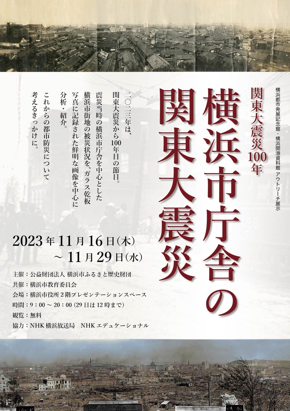 横浜都市発展記念館・横浜開港資料館 アウトリーチ展示「関東大震災100年 横浜市庁舎の関東大震災」開催のお知らせ