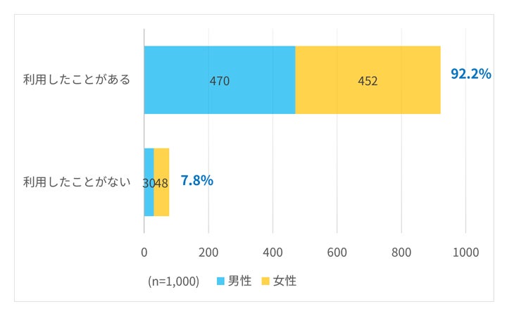 全体の92.2%が「利用したことがある」と回答しました。男女別に見ると、男性は470人、女性は452人が利用経験があると回答しており、性別による大きな差は見られませんでした。一方で、「利用したことがない」と答えた人は全体の7.8%にとどまりました。この結果から、ポイントサイトを活用した「ポイ活」が多くの人々の日常に根付いていることがわかります。ポイントを賢く貯めて使う活動は、節約やお得感を重視するライフスタイルの一部として支持されているようです。