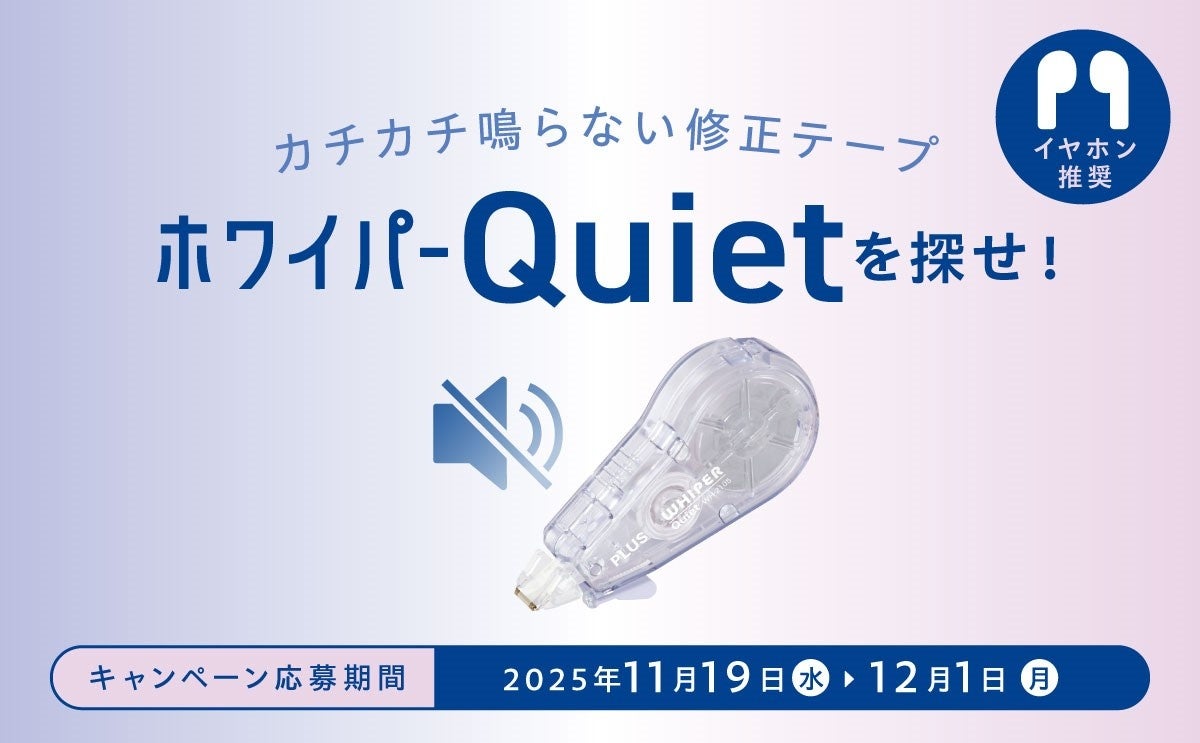 プラス株式会社(東京都港区 代表取締役社長 今泉忠久)は、テープを引くときの音を約90%(※1)カットした静音設計の修正テープ「ホワイパー クワイエット」を、2025年10月28日に発売します。