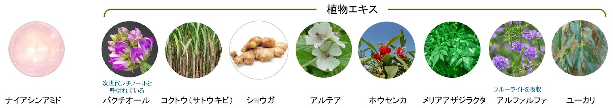 美容成分ナイアシンアミドと、次世代レチノールと呼ばれているバクチオールやコクトウを含む、8種類の厳選された植物エキスを配合。