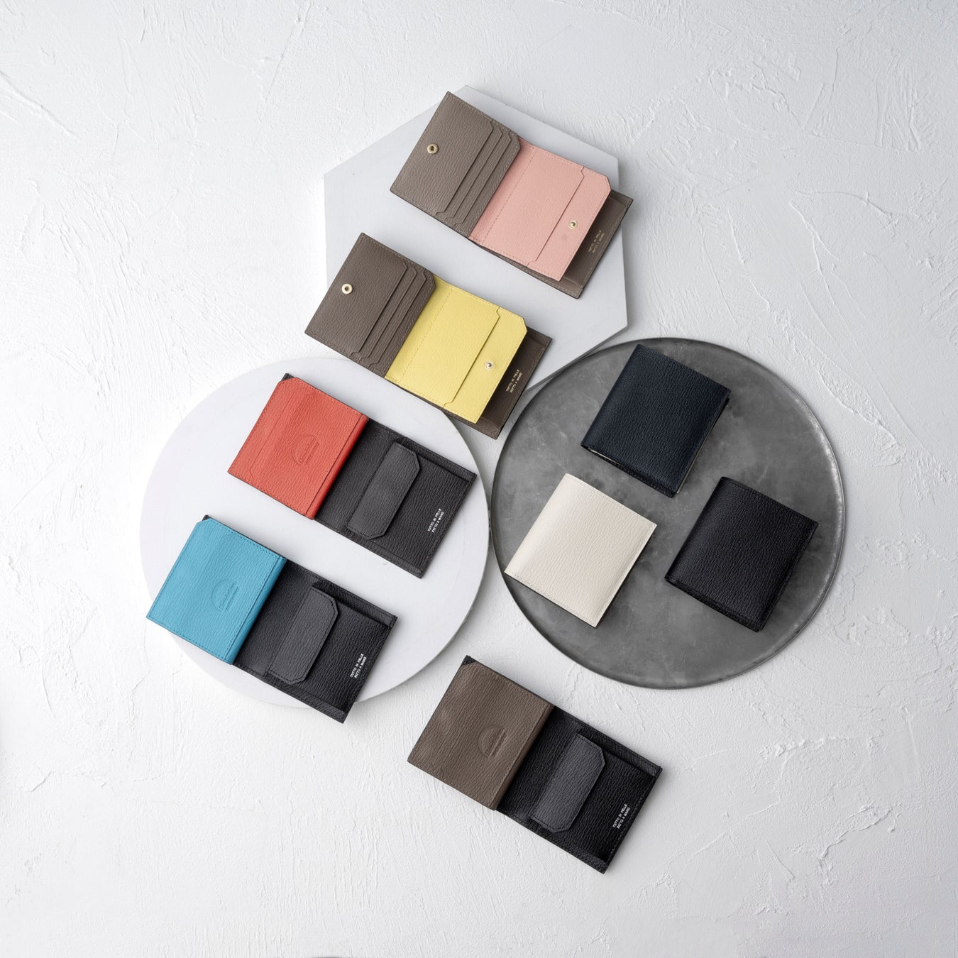 「二つ折りカードウォレット」は全8色展開。