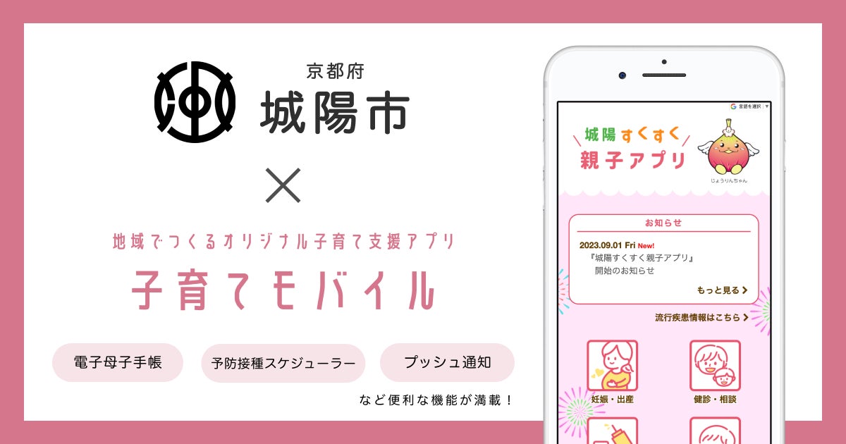 自治体向けサービスを開発する株式会社ミラボ(本社:東京都千代田区、代表取締役:谷川一也、以下「ミラボ」)の子育て支援アプリ「子育てモバイル」が、京都府 城陽市に導入され、「城陽すくすく親子アプリ」として9月1日より提供を開始します。