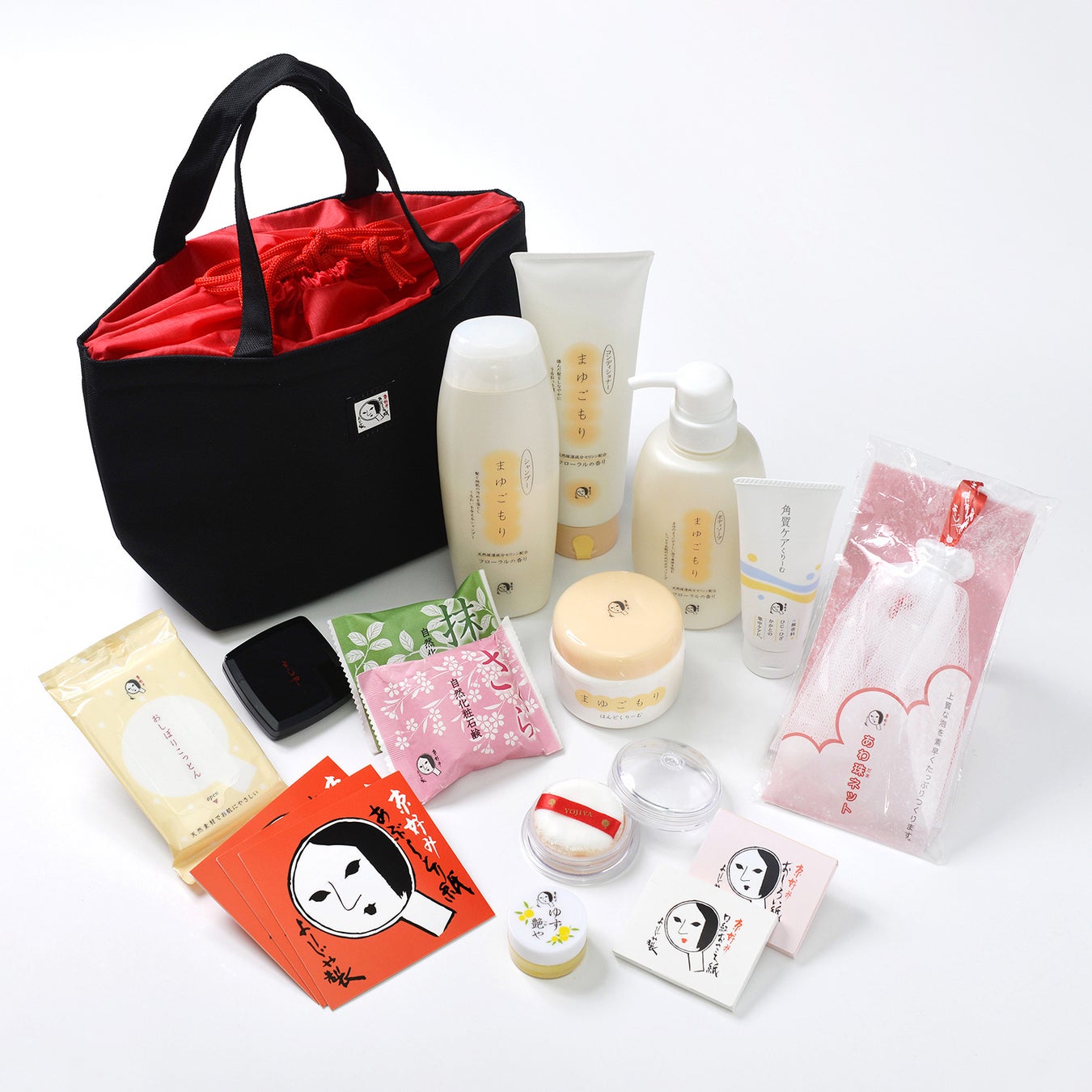 10,000円の福袋はよーじやを代表する保湿ケアシリーズ「まゆごもり」のヘアケア・ボディケアアイテムを中心に、リップクリーム「ゆず艶や」やコスメアイテム、お出かけにぴったりな保冷バッグまで、魅力が詰まったボリュームたっぷりの内容です。