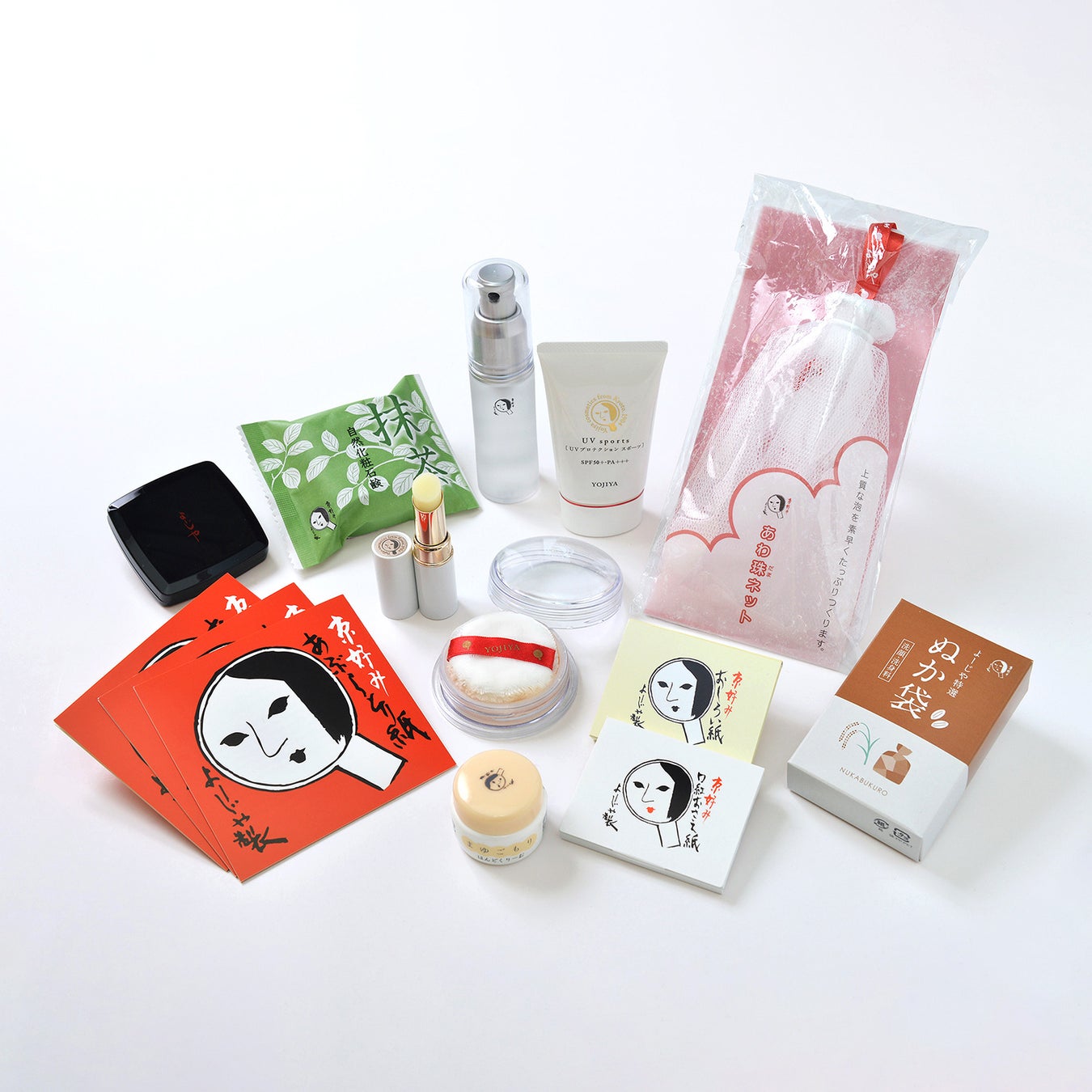 5,000円の福袋は、よーじやの人気商品であるせっけんや洗顔ネットのほか、口紅やフェイスパウダーなどのコスメまで揃った充実の内容。