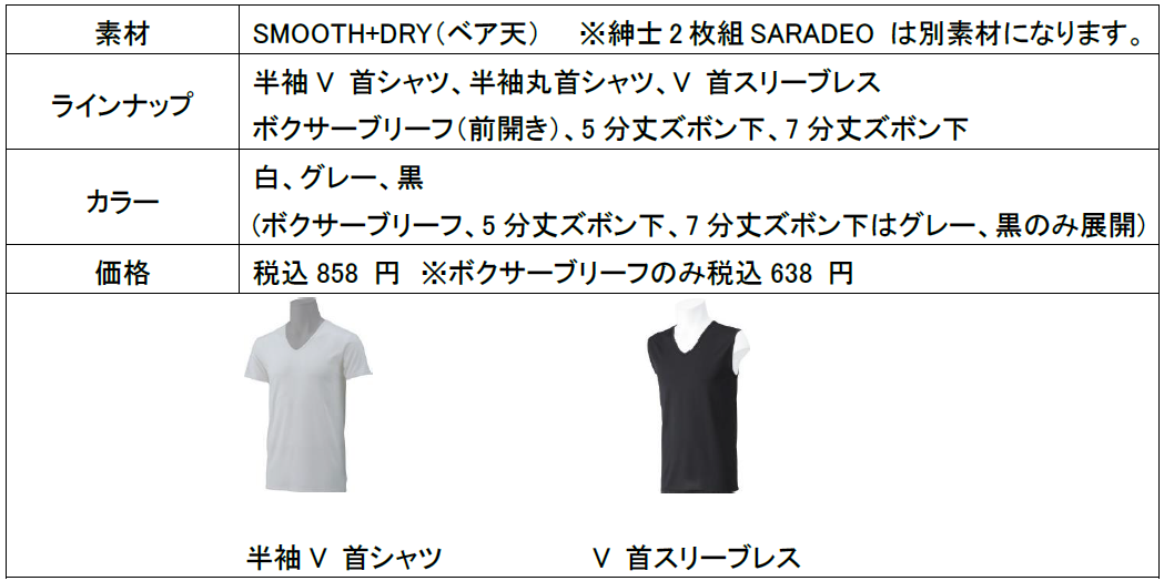 リサイクルポリエステル使用 地球にやさしい新素材 さらっと着心地快適・機能性抜群インナー「SARADEO(サラデオ)」新発売