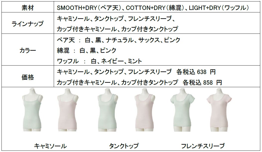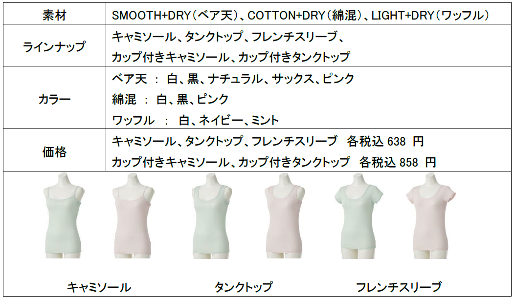 また、部屋干しに便利な素材で開発し、部屋干し独特の生乾きの臭いを発生させない機能があるほか、家庭用乾燥機にも対応しており、生地を傷めることなく手軽に日々のお手入れが可能です。