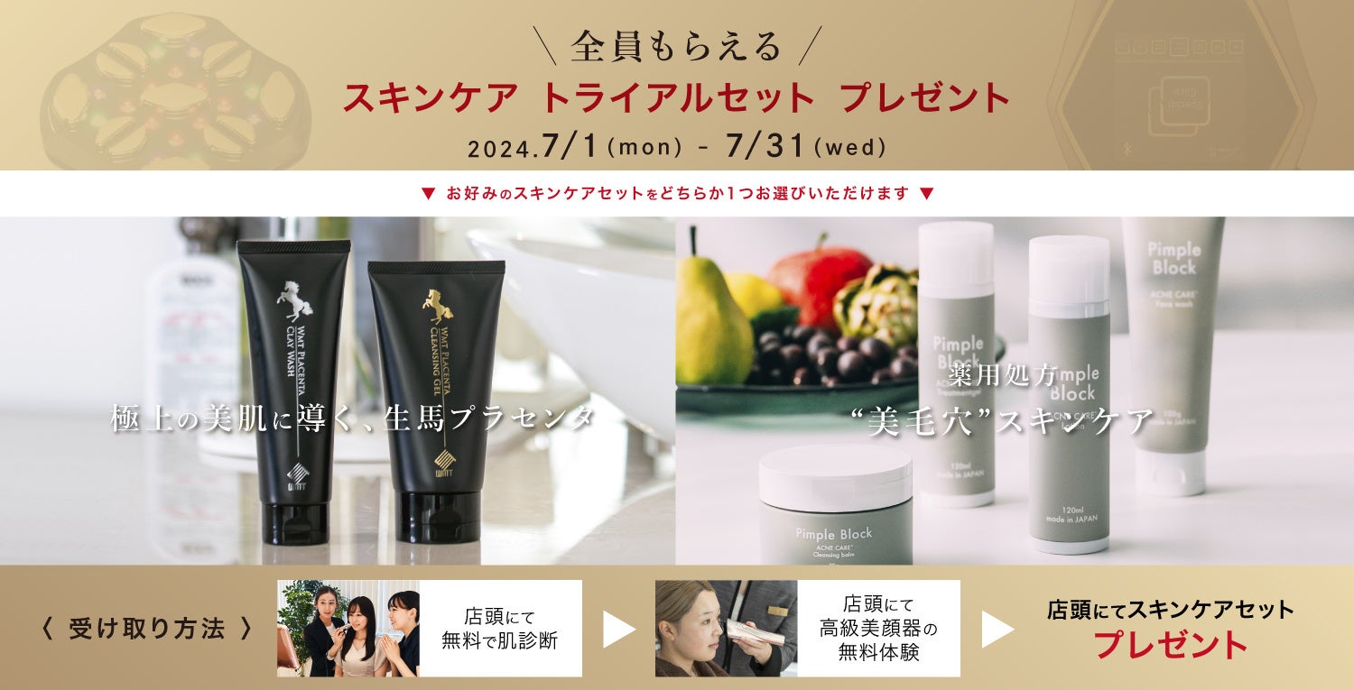 店頭にて肌診断と美顔器の無料体験をしていただいた方にスキンケアトライアルセットをプレゼント。