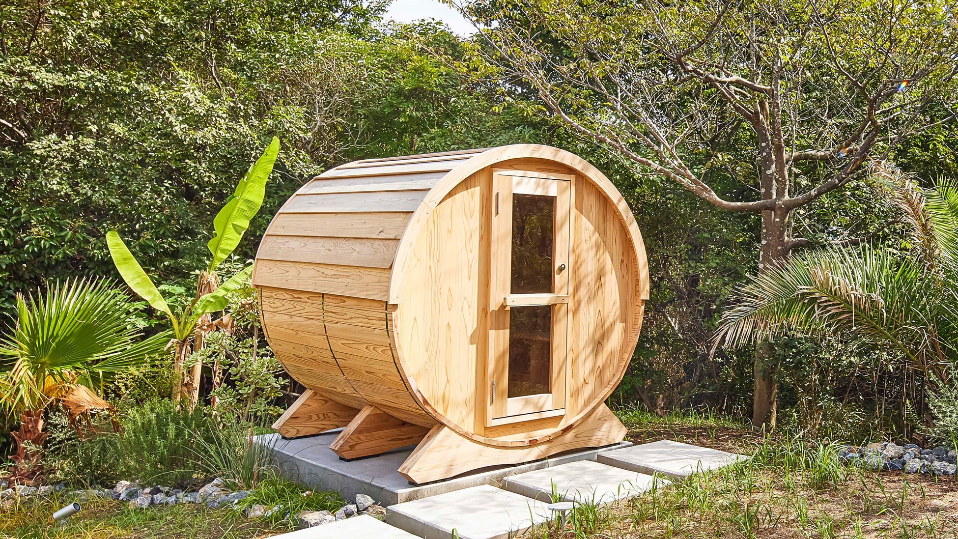広々とした庭には、ONE SAUNAのバレルサウナを導入。