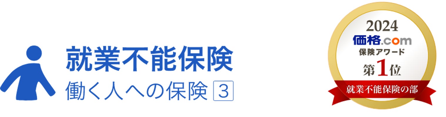 *3 就業不能保険「働く人への保険3」は、「価格.com保険」において、就業不能保険の部で、2023年1月1日~12月31日の期間に最も申し込み件数の多かった保険商品として選出されました。2023年版より2年連続同アワードを受賞。