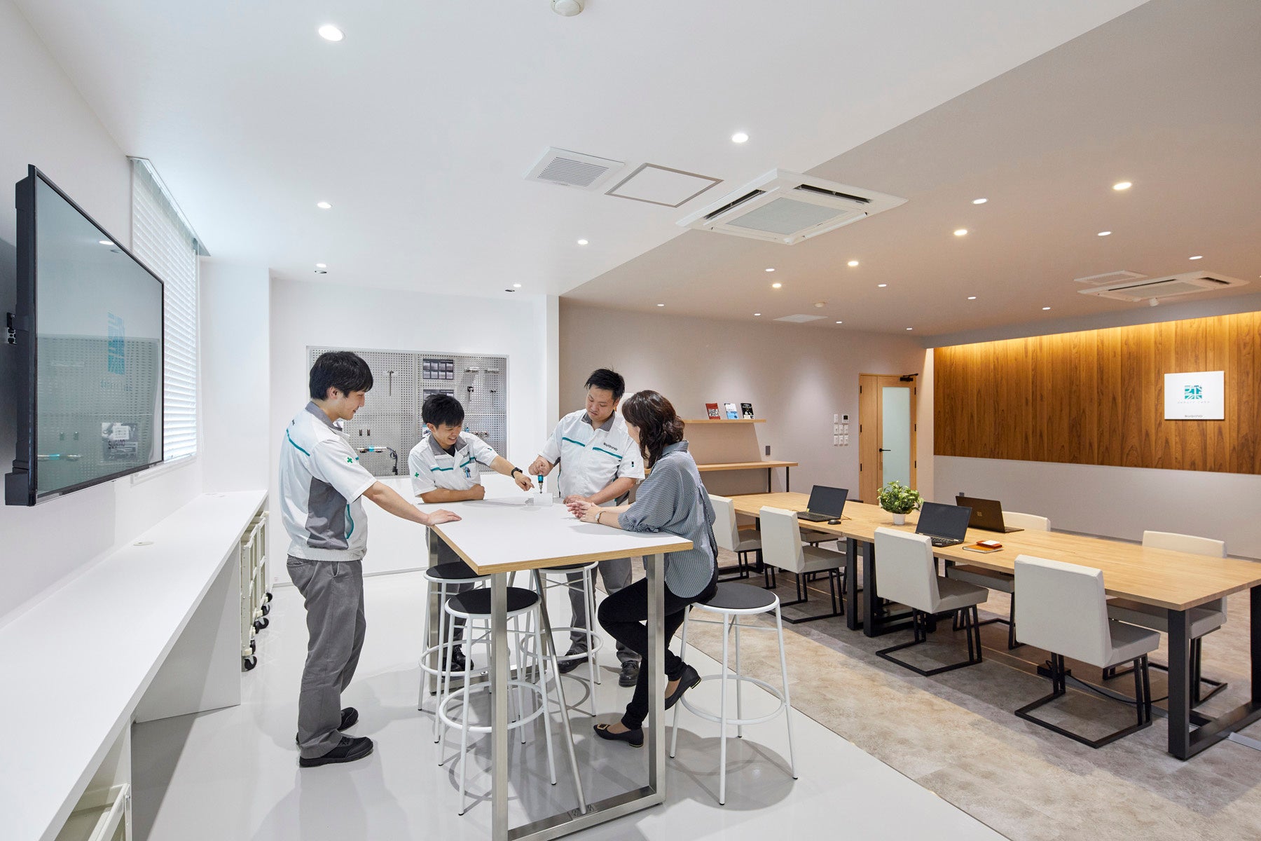 施 設 打合せルームと軽作業スペースを備え、情報交換するHubエリア(6.5×9m)