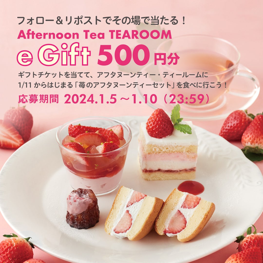 さらに、Afternoon Tea TEAROOMで使えるe Gift 500円分が500名様に当たるプレゼントキャンペーンを実施中。