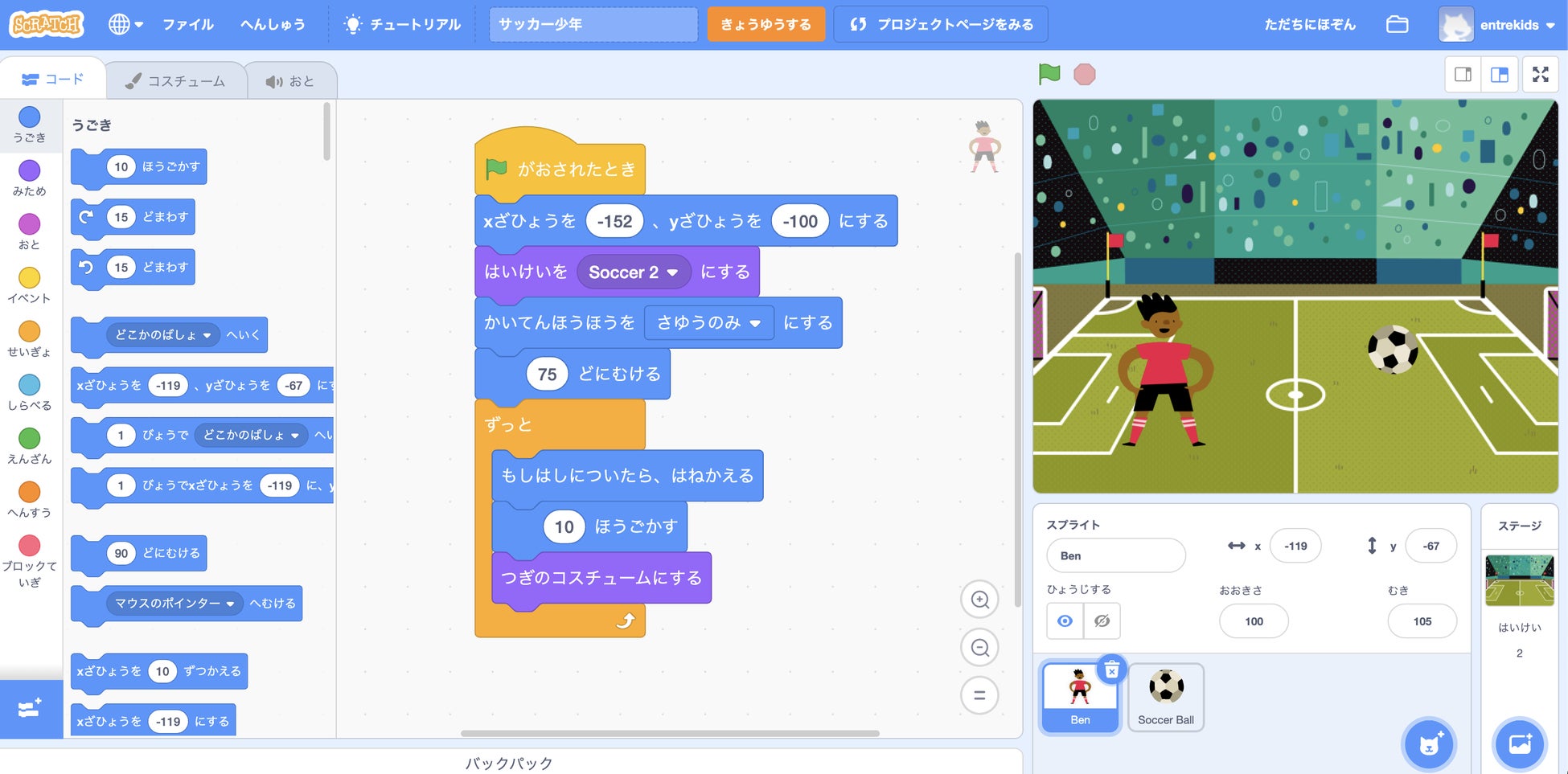 初めてのScratch「サッカー少年」ゲームを作ろう!