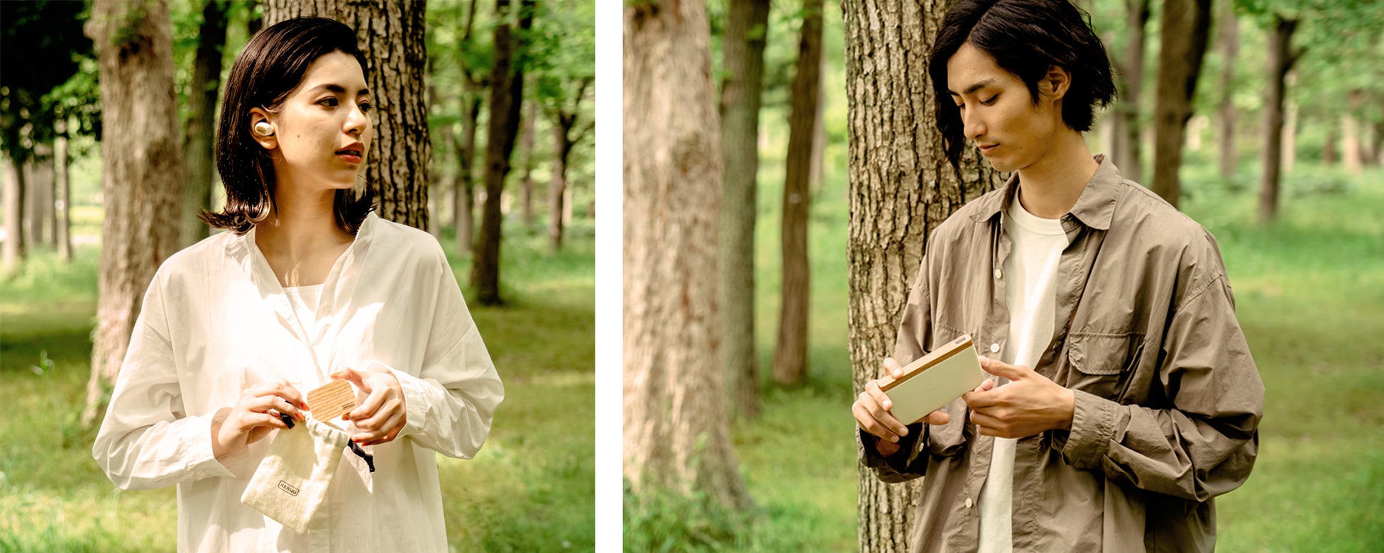 無機質な製品カテゴリーに、リアルな木を使用することで、温かみを感じられるように。
