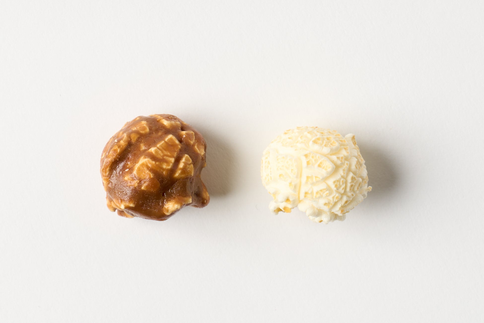 ポップコーンは、フレーバーが一粒一粒にしっかりと絡むキャラメライズに適したまんまるなマッシュルーム型コーンを使用