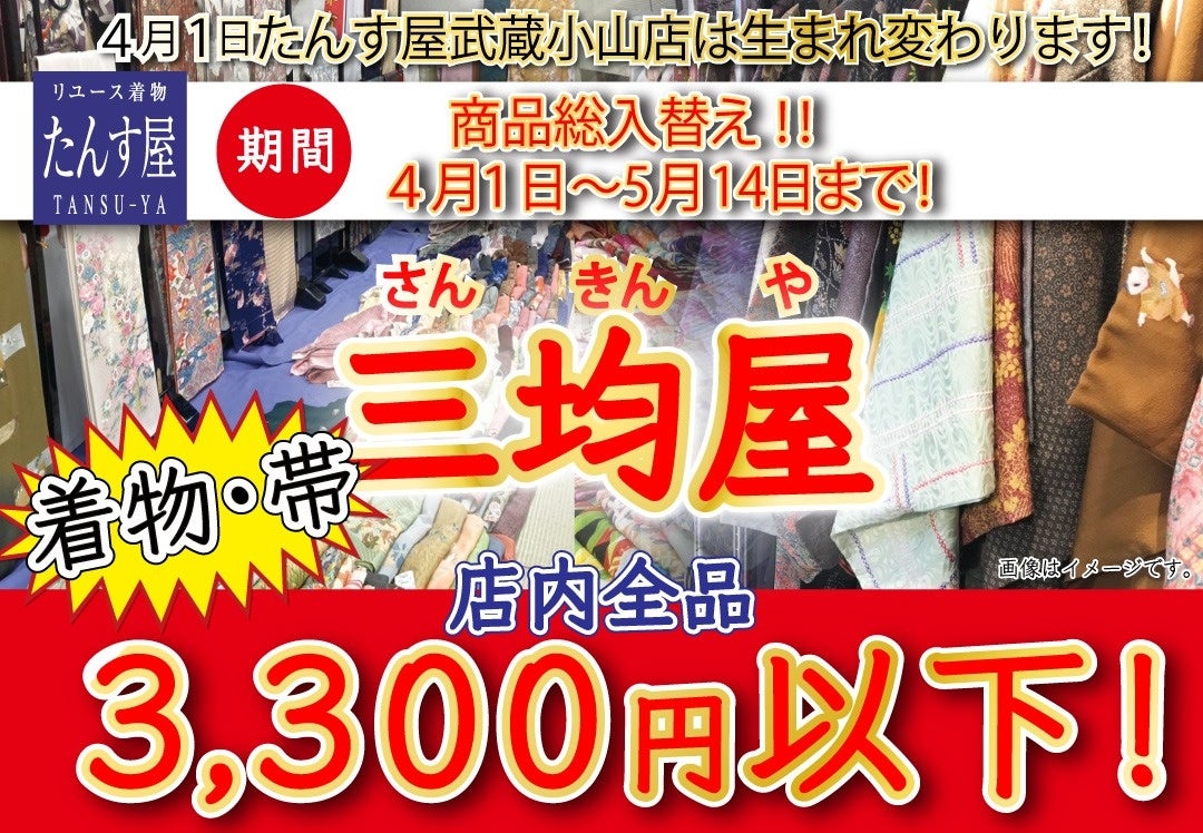 リユース着物の「たんす屋武蔵小山店」が「三均屋」に ─── 全商品が3,300円以下!
