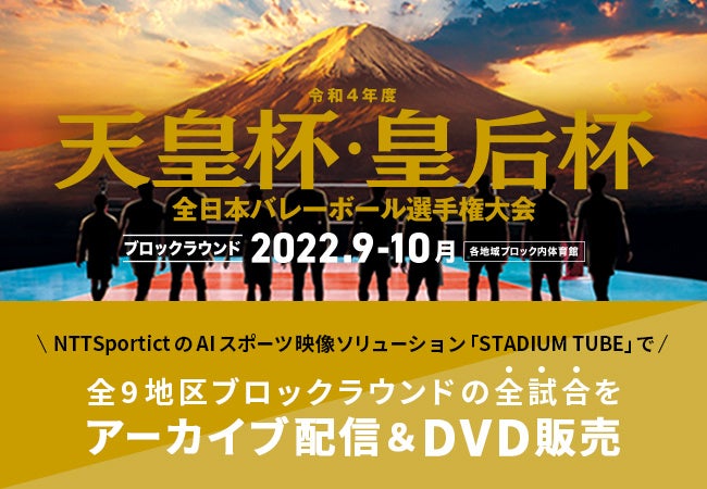 株式会社NTTSportict(⼤阪市都島区 代表取締役社⻑ 中村正敏、以下 NTTSportict)は、9月3日から始まる、公益財団法人日本バレーボール協会主催「令和4年度 天皇杯・皇后杯 全日本バレーボール選手権大会 ブロックラウンド」の全ブロック・全試合を、AIスポーツ映像ソリューション「STADIUM TUBE」を用いてアーカイブ配信いたします。