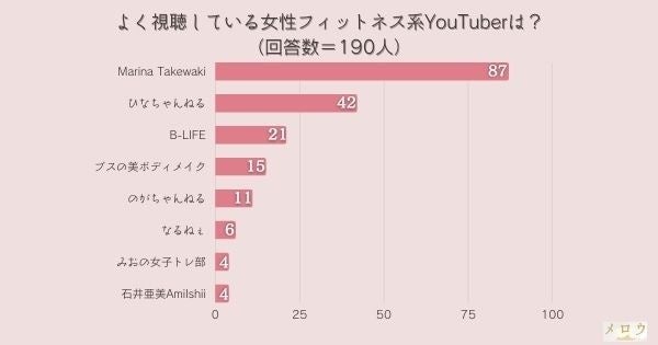<調査結果>よく視聴している女性フィットネス系YouTuberは?1位は『Marina Takewaki』!