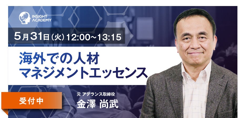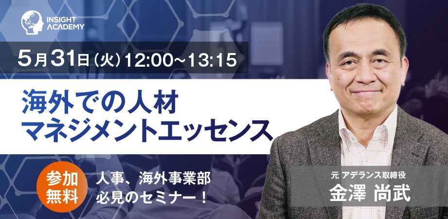 嘉章)は、大好評セミナーのアーカイブ動画、元アデランス グローバル人事トップに学ぶ「海外での人材マネジメントエッセンス」を、2022年5月31日(火)12時より生配信致します。