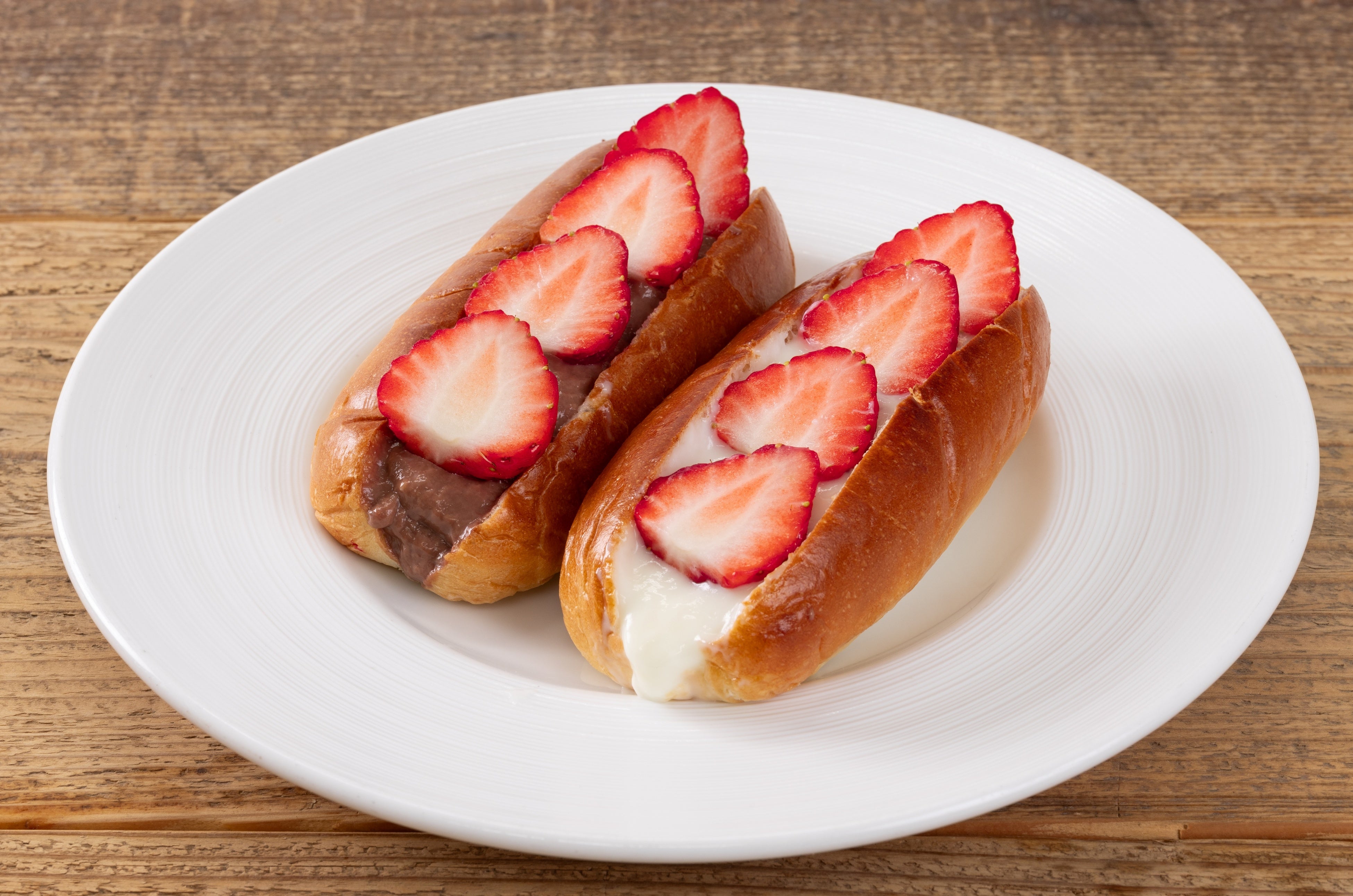 苺をトッピングした~とろける大山ミルククリームコッペパン~