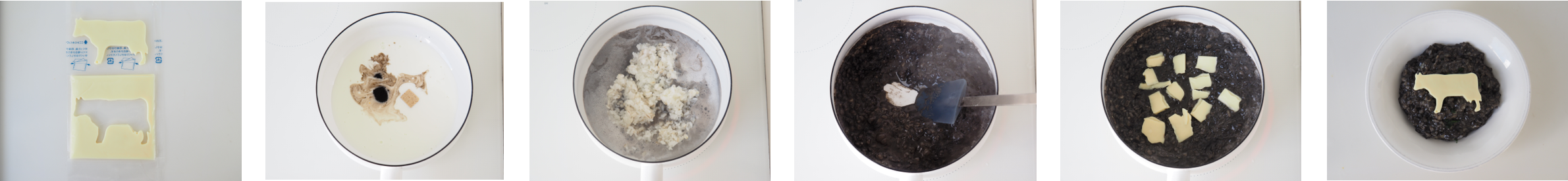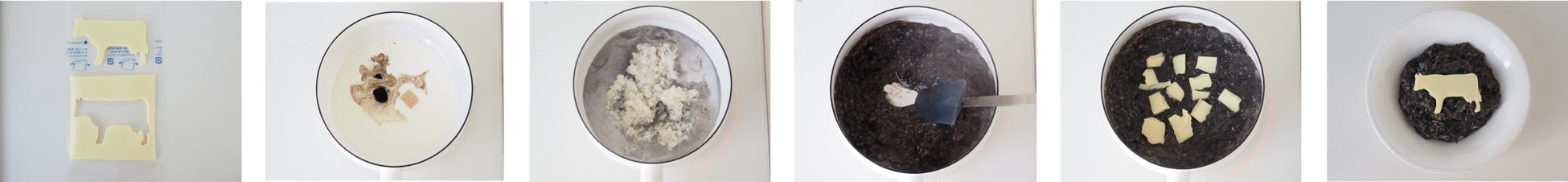 ・チーズを2枚合わせ、牛型で抜いておく。残りは大きめに刻んでおく。