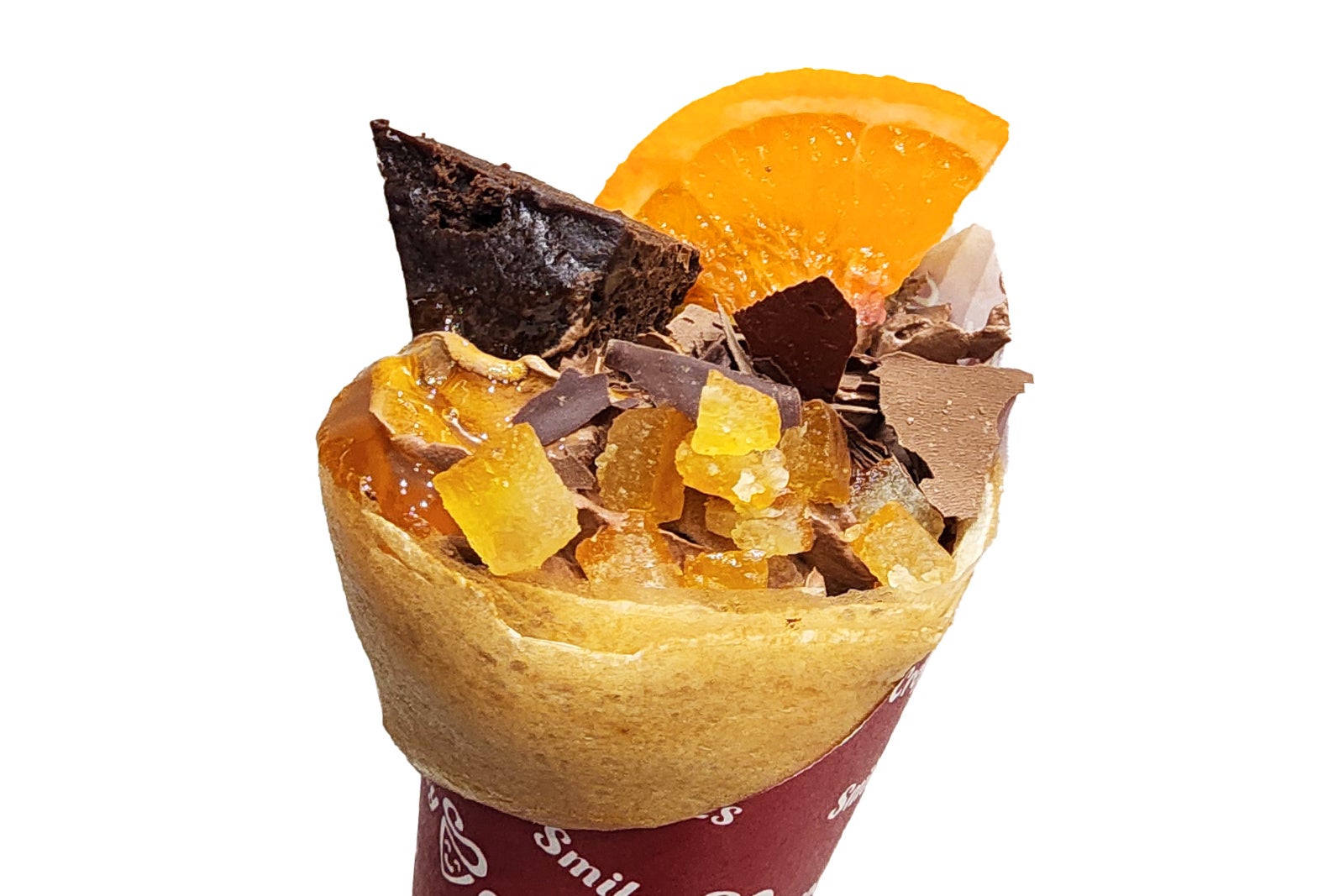 【スマイリークレープ】濃厚ショコラ× 柑橘!冬季限定の新商品『ショコラオランジュクレープ』2025年12月20日(土)より発売を開始