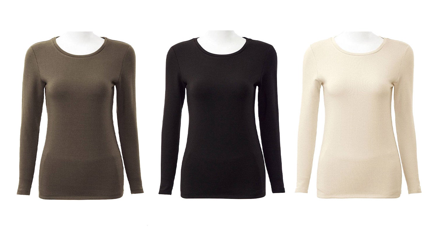 特に寒い日や真冬のお出かけにおすすめの『肌側綿であたたかいインナー(衿狭め10分袖)』がセシールから新発売!