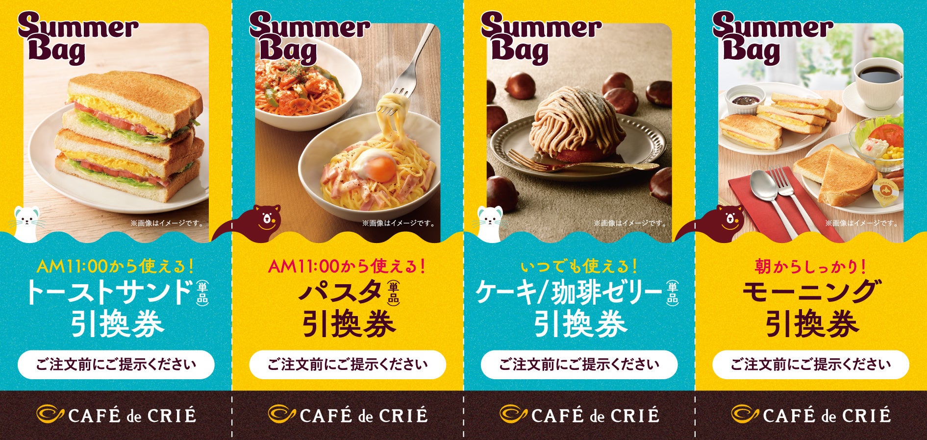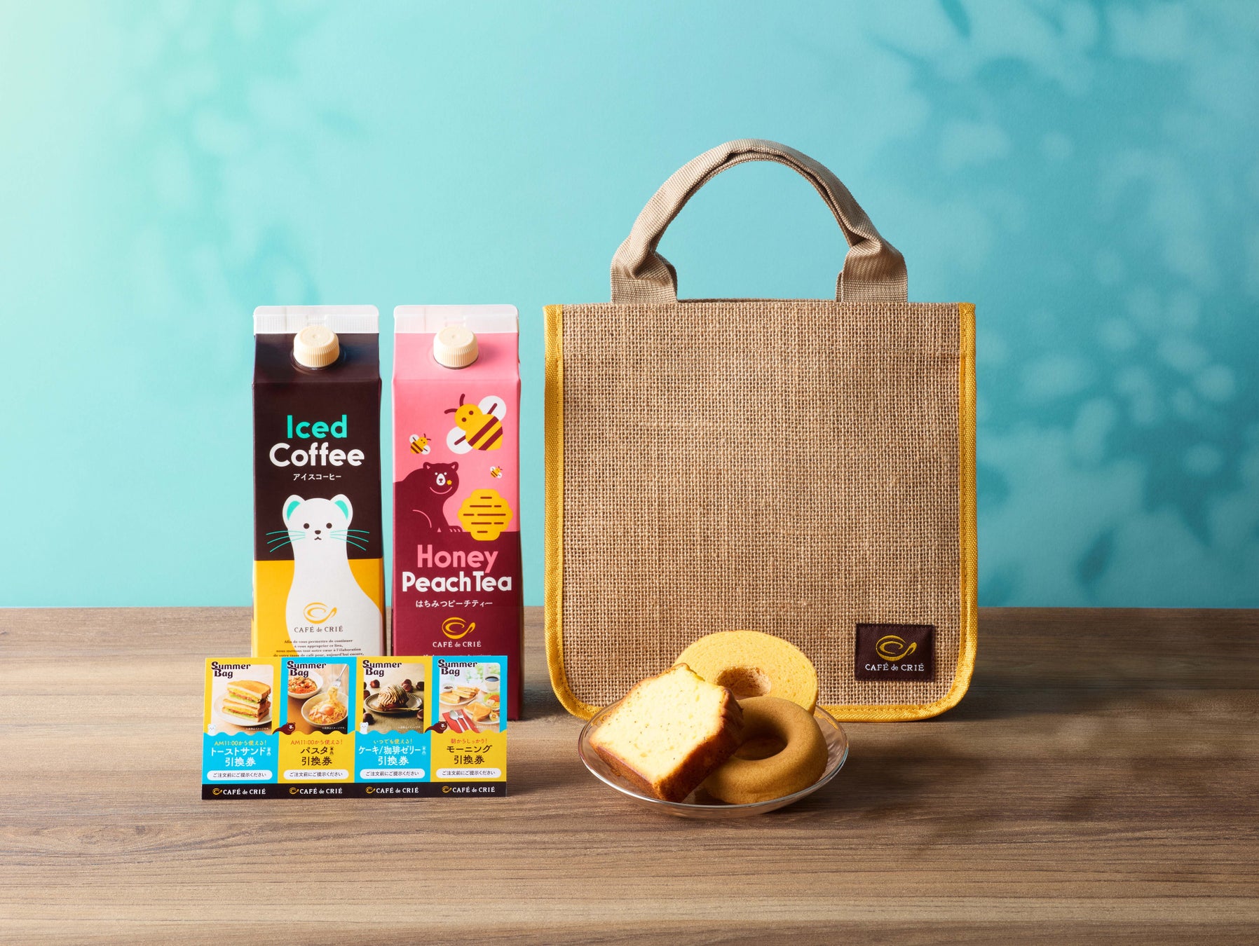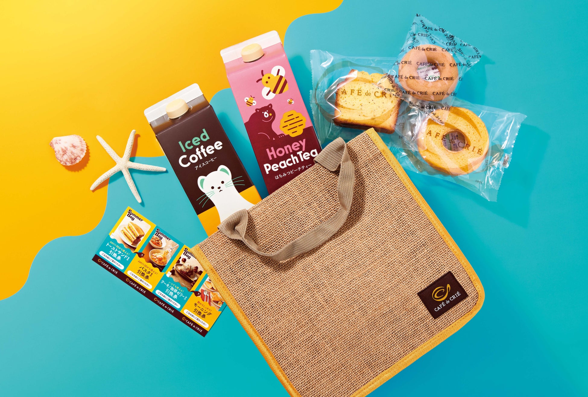 「カフェ・ド・クリエ サマーバッグ」は、オリジナルバッグにリキッドが1本、人気の焼き菓子が3種、フード引換券が4枚という、豪華アイテムが入った数量限定のバッグです。『カフェ・ド・クリエ』では、初のサマーバッグとなります。