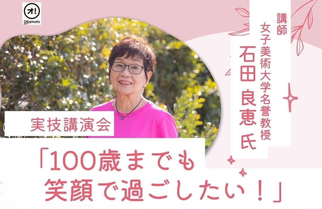 各地で人気を博す石田良恵さんの講演会。今回のテーマは「100歳までも笑顔で過ごしたい」。自らが全力を注いできた研究と体験をもとにした、実技を交えた講義が開催されます。