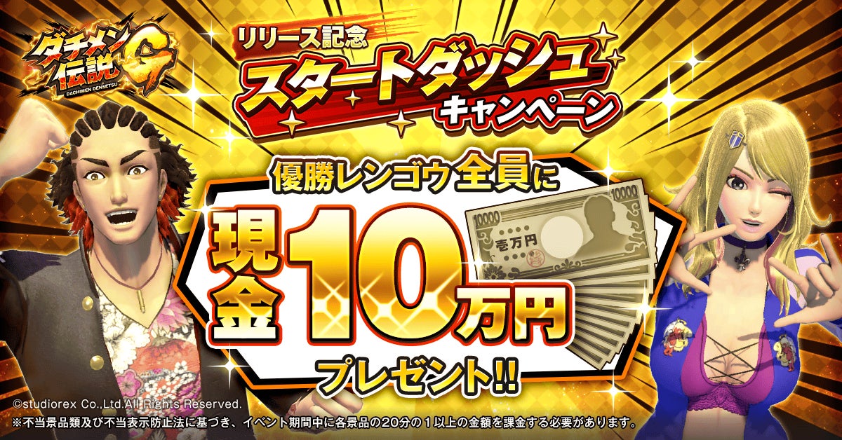 優勝メンバーは現金10万円!『ダチメン伝説G』スタートダッシュキャンペーン予告!