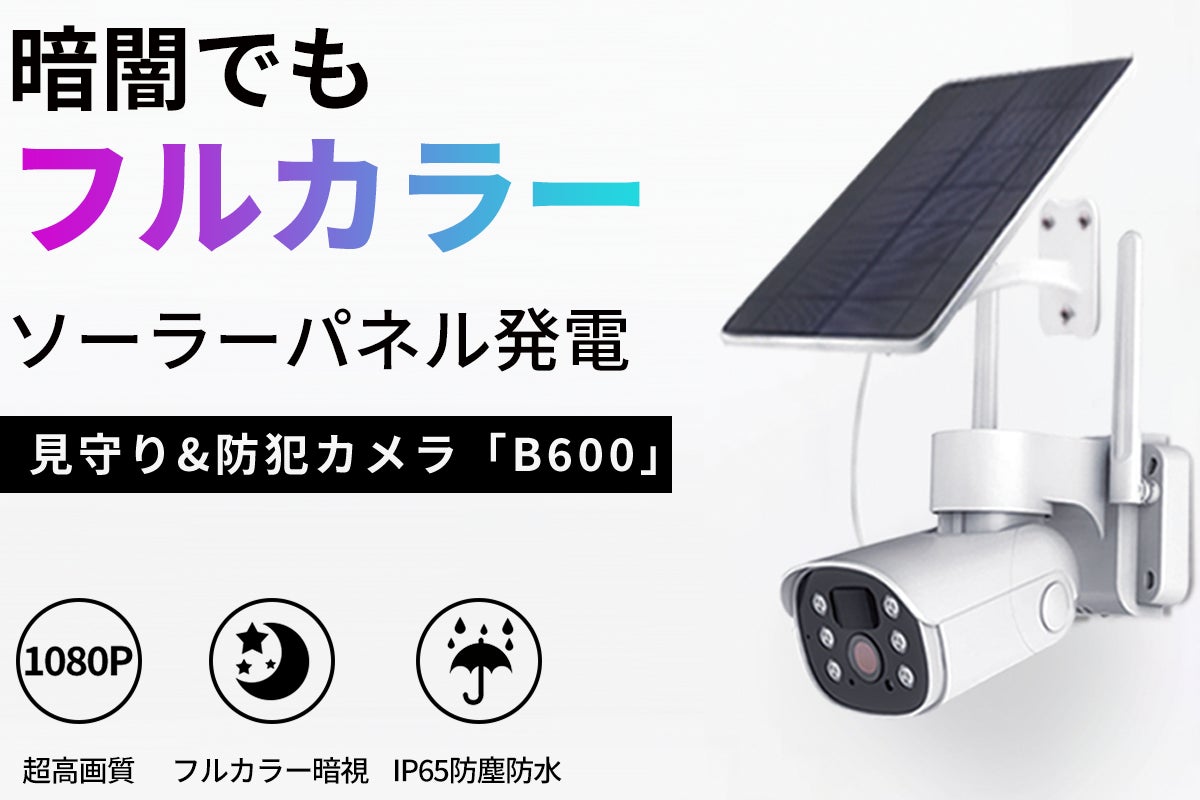 屋外防犯の決定版!ソーラーパネル搭載だから常時電源不要。フルカラーナイトビジョン搭載の新時代防犯カメラ「B600」【アプリ連携・PIR人感センサー・AI認識・双方向通話】