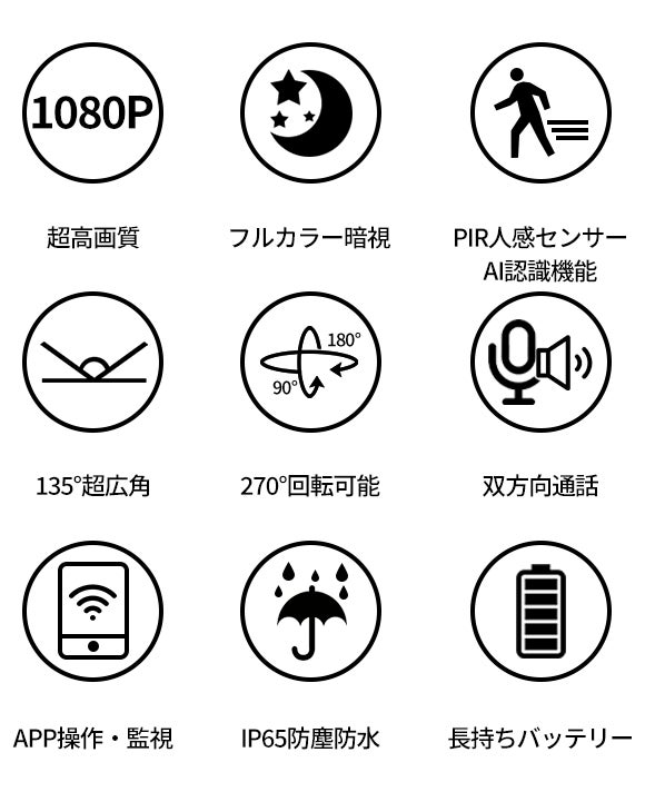 •1080pフルハイビジョン、鮮明に撮影可能!270°回転可能+135°超広角、隅々までくっきり!