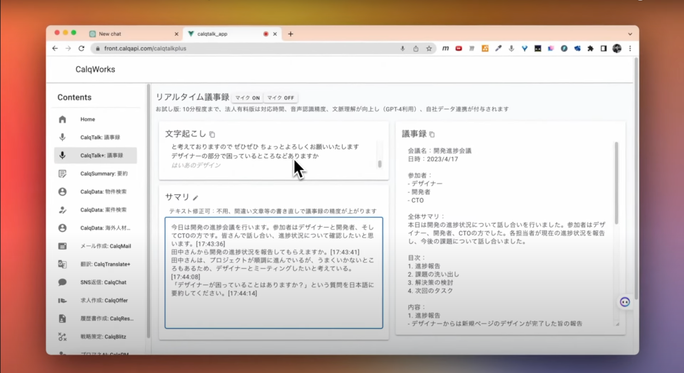 GPT搭載リアルタイム議事録 CalqTalk(カルクトーク)大幅アップグレード!無償お試し版公開中