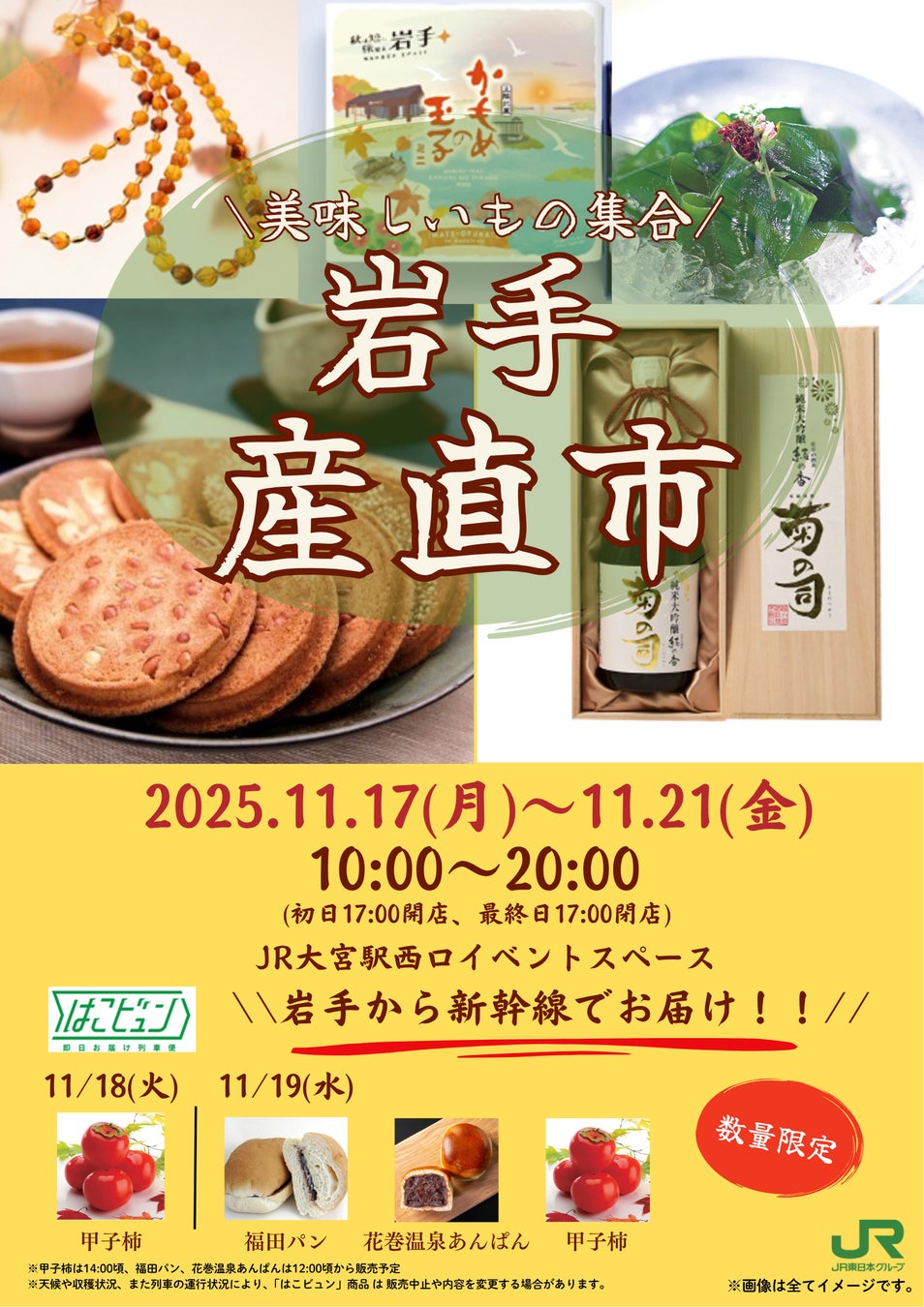 ※甲子柿は14:00頃、福田パン、花巻温泉あんぱんは12:00頃から販売予定