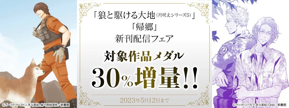 2023年4⽉28⽇(⾦)より、『Roseraie』にてモノクローム・ロマンス文庫の新刊配信を記念して、対象10作品が期間限定で30%メダル増量となります。