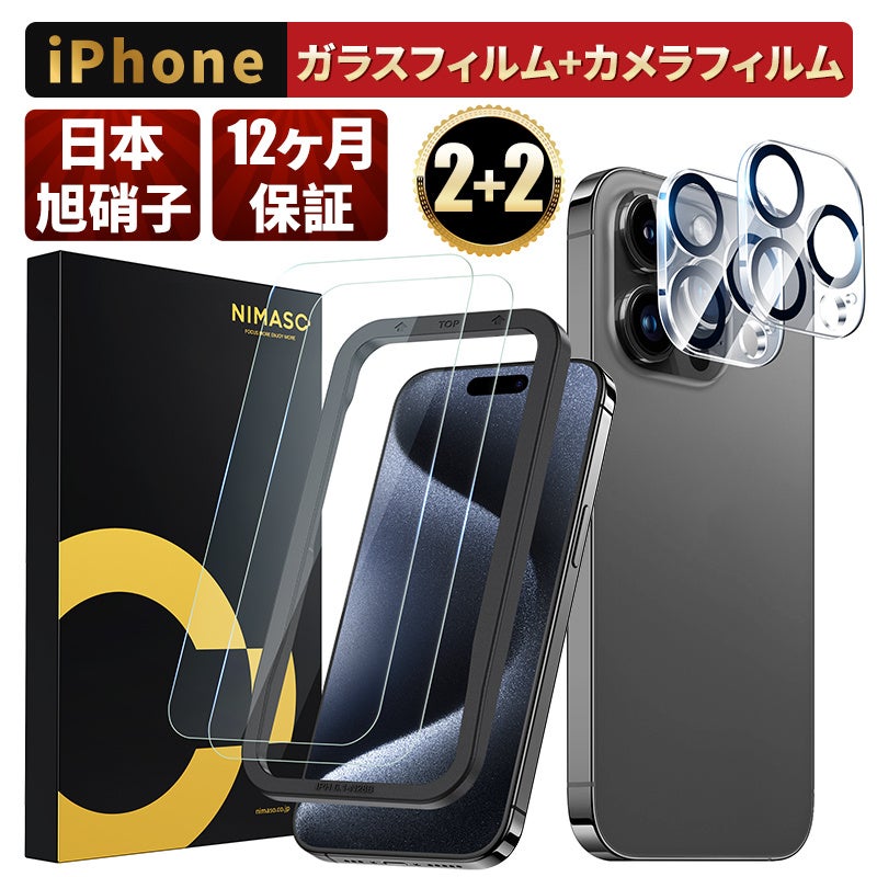 【2+2 ★ガラスフィルム2枚+レンズフィルム2枚】NIMASO フィルムセット