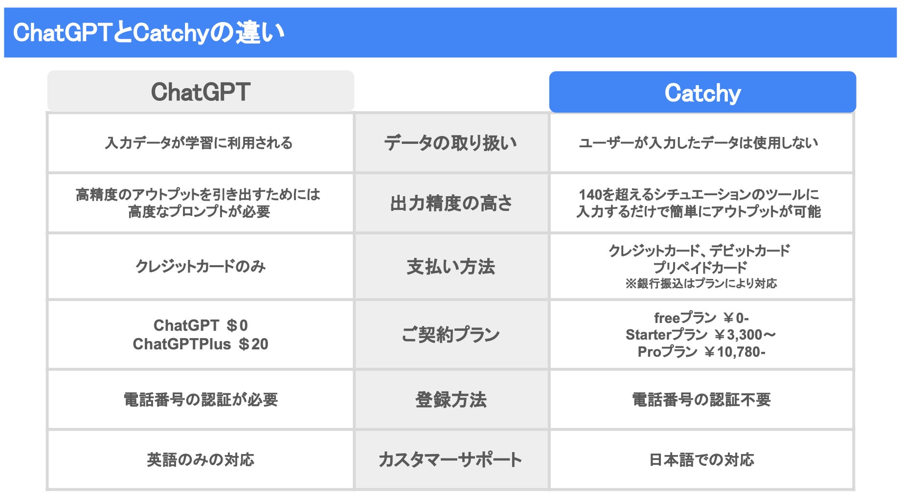 世界中から注目を集め話題になったChatGPT。2023年はAI技術の進化を象徴する年になりました。文章生成AIサービスとして2022年に日本で誕生したCatchyは、ChatGPTと共に目まぐるしい進化を遂げながら、Catchyだからできる日本語に特化したサービスを提供しております。