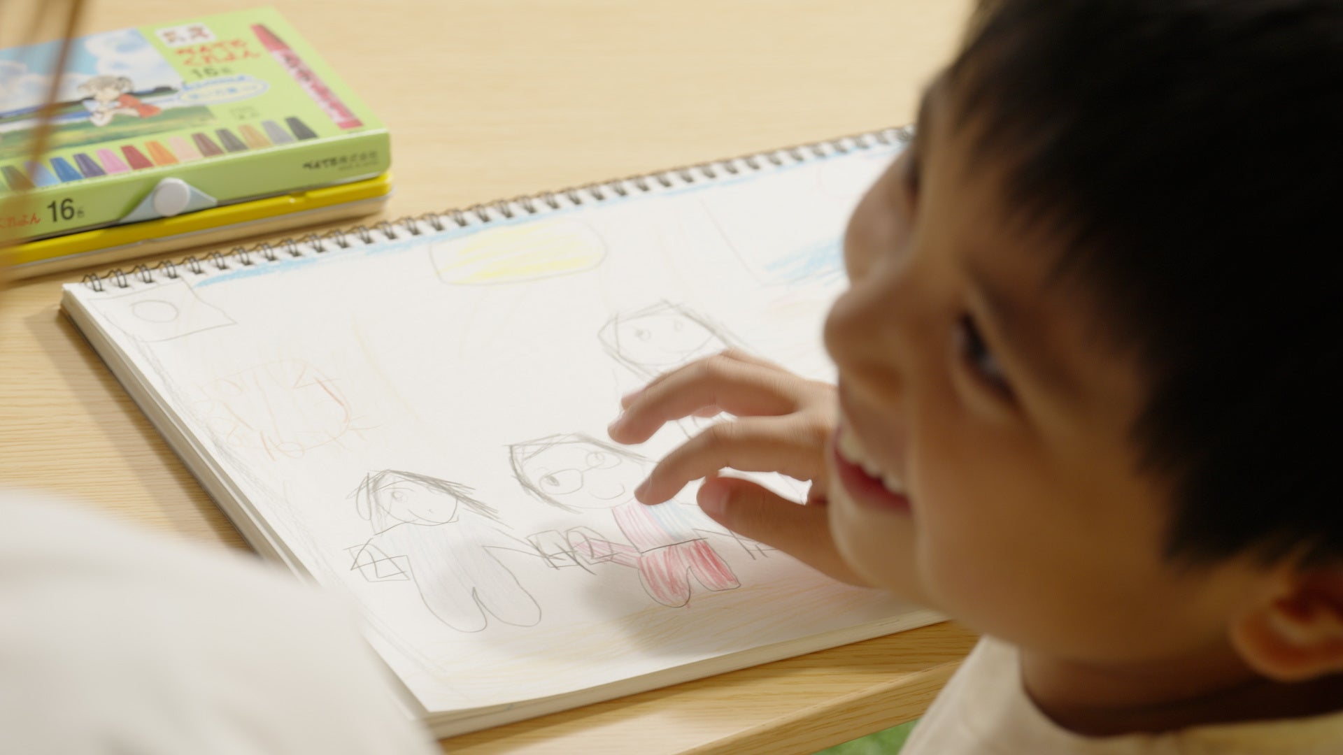 次に「一番好きなパパとママを描いてください」というお題で絵を描いてもらったところ、今度は家族でお出かけしている絵や遊んでいる絵が描かれました。家族全員で過ごす時間が、子どもにとっても親にとっても最も大切なものであり、家族全員がその時間をもっと増やしたいという思いを表しています。