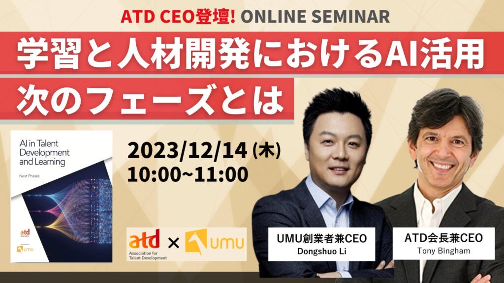 【ユームテクノロジージャパン|人材開発におけるAI活用セミナー開催】ATD CEOとUMU創業者が解説する「学習と人材開発におけるAI活用:次のフェーズ」とは
