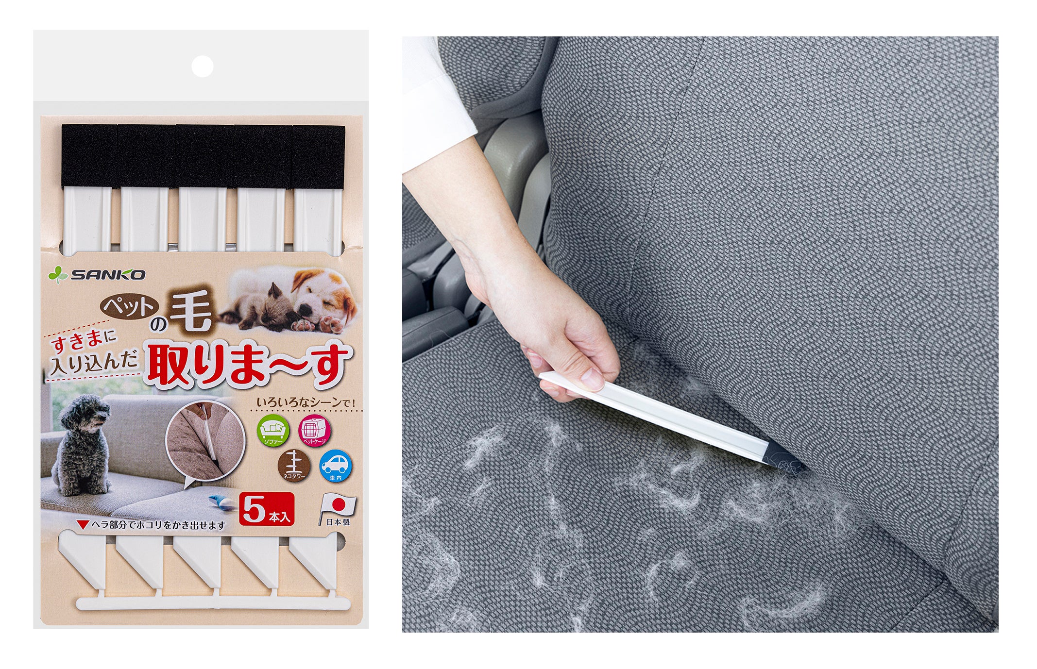 今回のイチオシ商品『ペットの毛取りま~す すきま用』は、布ソファーなどの手が届きにくいすきまに入って、毛をとることができます。コンパクトなので、お出かけの際にも1本持っておくと便利です♪