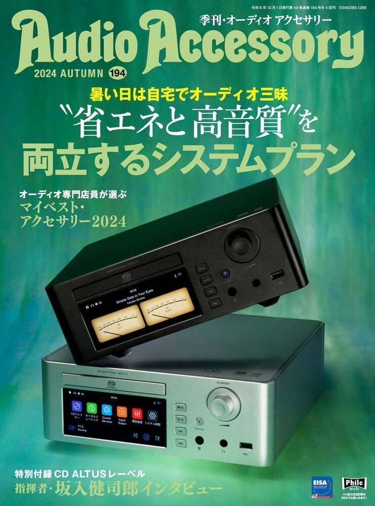 高音質再生を追求するピュアオーディオの専門誌「オーディオアクセサリー」の最新 194号が、8月26日(月)に発売となりました。緊急特集として、まだまだ続く暑さの中、おうちオーディオを少ない消費電力でクールに楽しむ6評論家のシステム提案をお届け。特別付録は、クラシックの名演奏をリリースするALTUSレーベルの高音質CDサンプラー。レーベル主催の斎藤啓介氏、指揮者の坂入健司郎氏のインタビュー記事とともにお届けしています。