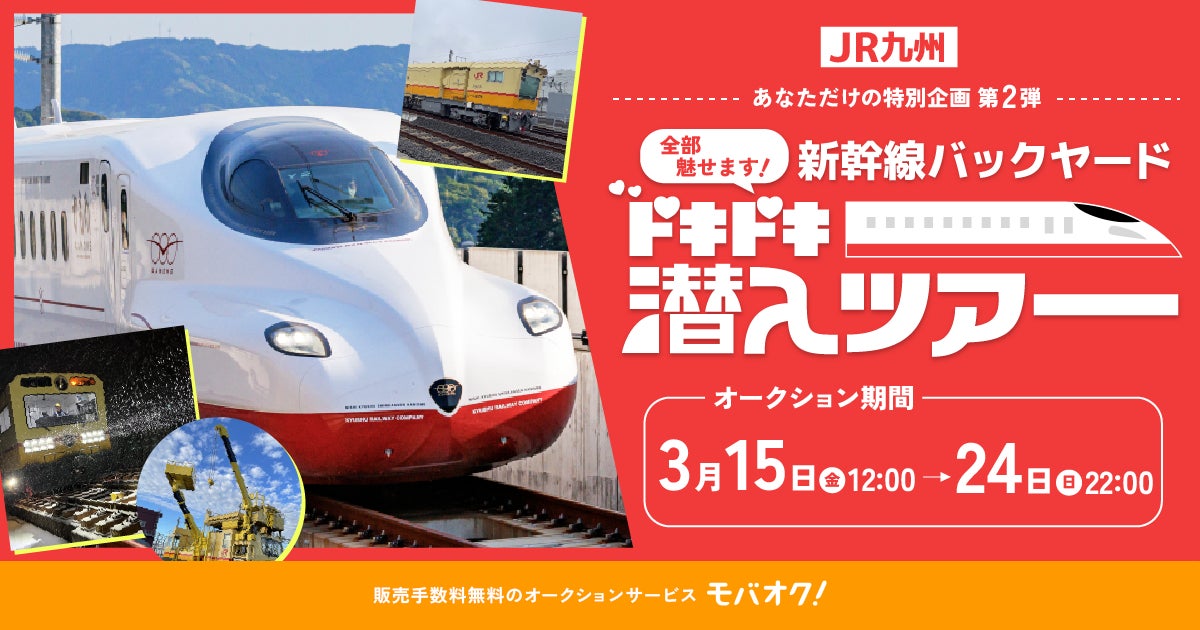 九州旅客鉄道株式会社(代表取締役社長:古宮 洋二、本社:福岡市博多区、以下JR九州)は、株式会社モバオク(代表取締役社長:生田目 知之、本社:東京都渋谷区、以下モバオク)が運営するオークションサービス「モバオク」にて、昨年度に続く第2弾として、あなただけの特別企画「全部魅せます!新幹線バックヤードドキドキ潜入ツアー」を2024年3月15日(金)から開始します。