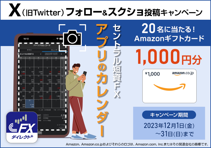 【セントラル短資FX】Amazonギフトカード1,000円分が当たる!X(旧Twitter)フォロー&スクショ投稿キャンペーン